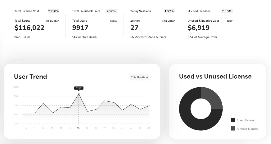 Real-time visibility into license usage, helping you reclaim budget and align costs with actual needs..